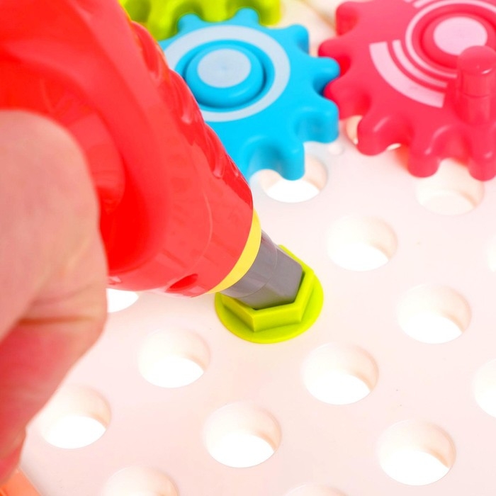 Малыш получит необходимые бытовые знания, научится закручивать шурупы, болты, шестерёнки, пуговки, а также придумывать новые конструкции.