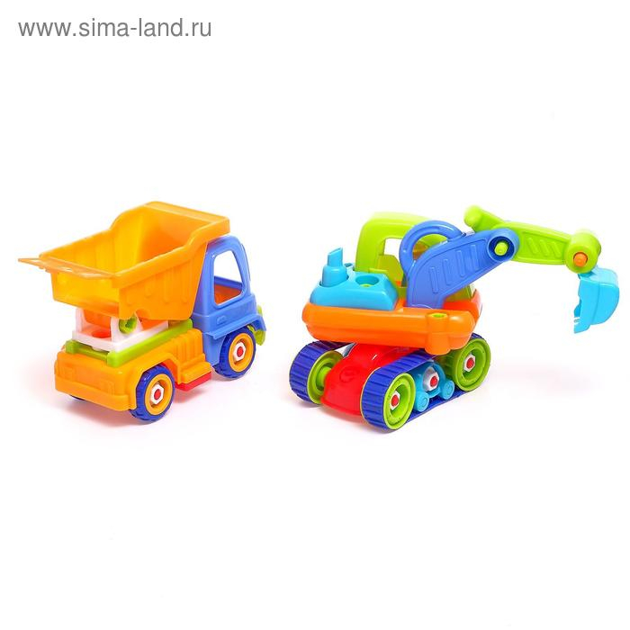 Конструктор винтовой «Строительный транспорт», набор 2 шт, с электрическим шуруповертом