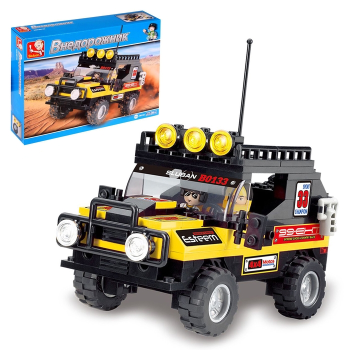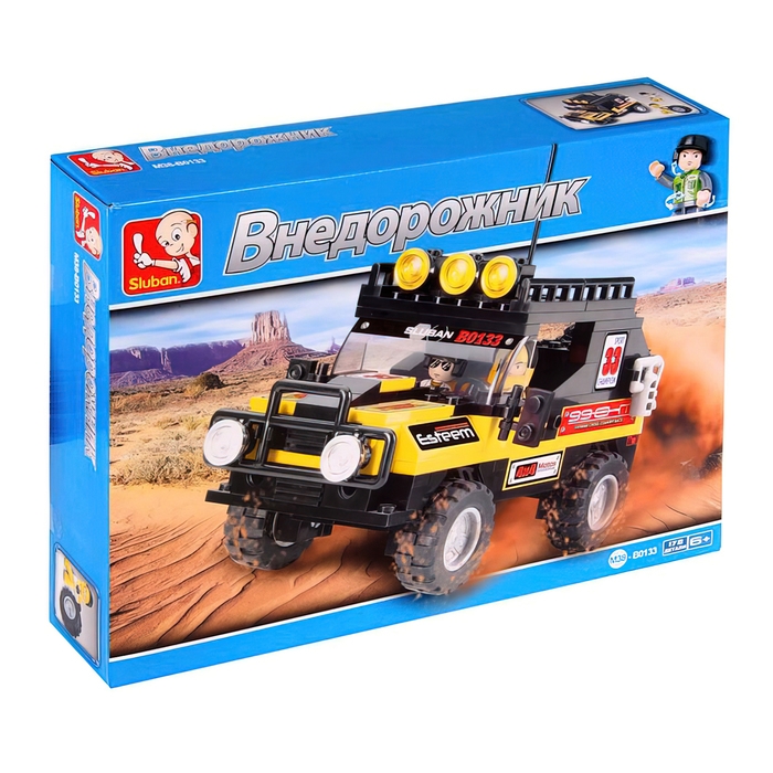 Юному путешественнику не обойтись без внедорожника торговой марки Sluban. Этой машине не страшны ни горные насыпи, ни песчаные дюны — она легко проедет по любому грунту. Из 172 деталей мальчишка сконструирует мощный вездеход, отправится на нём в экспедицию или примет участие в гонках по бездорожью.