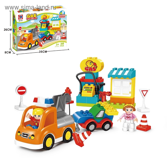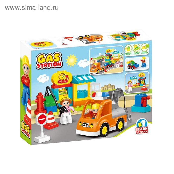 С этим набором ребёнок начнёт изучение основ дорожного движения, построит автомобили и заправочную станцию. В процессе игры малыш повторит поведение взрослых и освоит новые социальные роли.