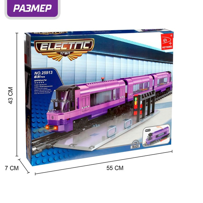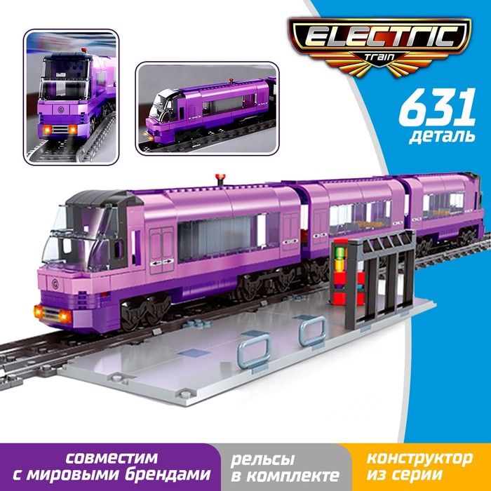 Конструктор ЖД «Электропоезд пассажирский», работает от батареек, 1287 деталей