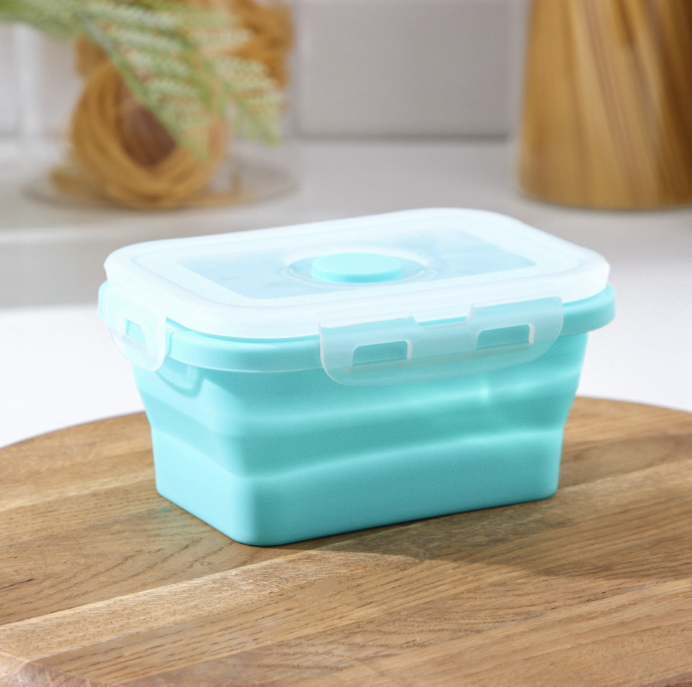 Контейнер складной с крышкой Доляна «Коста», 400 мл, 12,5x9x6,4 см, цвет бирюзовый