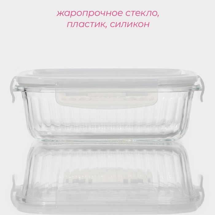 Контейнер для еды из жаропрочного стекла Доляна «Данте», прямоугольный, 640 мл, 17×12,5×6,3 см
