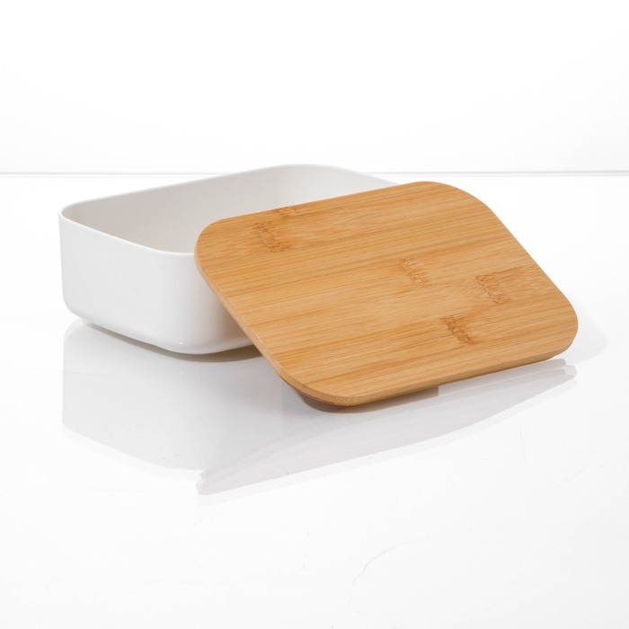 Контейнер оснащен плотной крышкой, которая надежно защищает содержимое от попадания пыли, влаги и грязи. Кроме того, крышка из бамбука придает контейнеру стильный и современный вид.