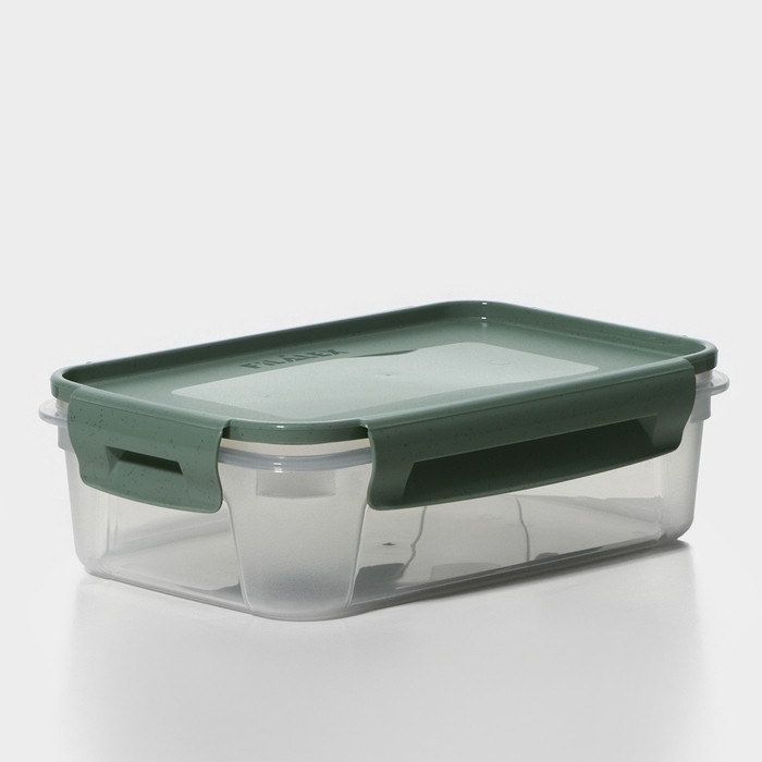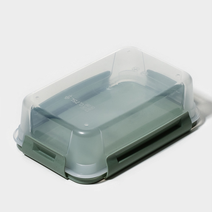 Контейнер пищевой Lock&Ok, 0,75 л, 18,6×12,2×5,5 см,прозрачный, крышка зеленая
