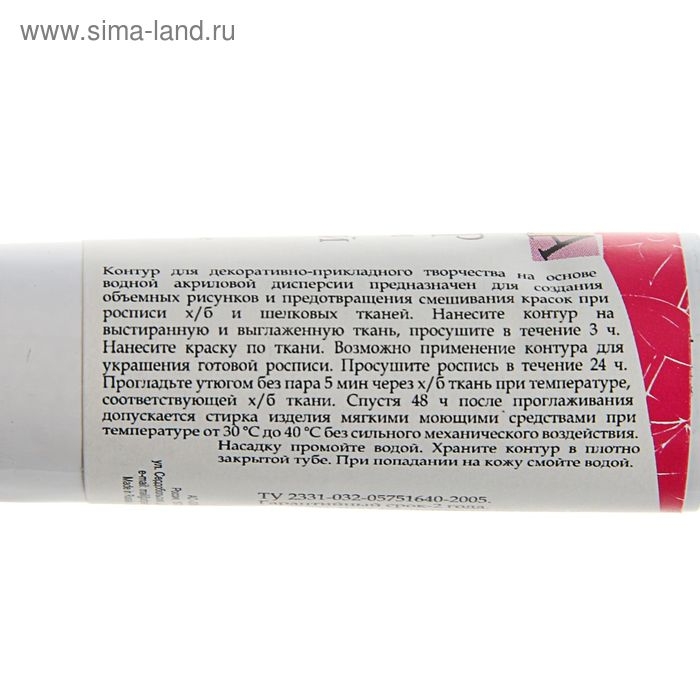 Контуры для декоративно-прикладного творчества на основе водной акриловой дисперсии предназначены для создания объемных рисунков и предотвращения смешивания красок при росписи х/б и шелковых тканей.