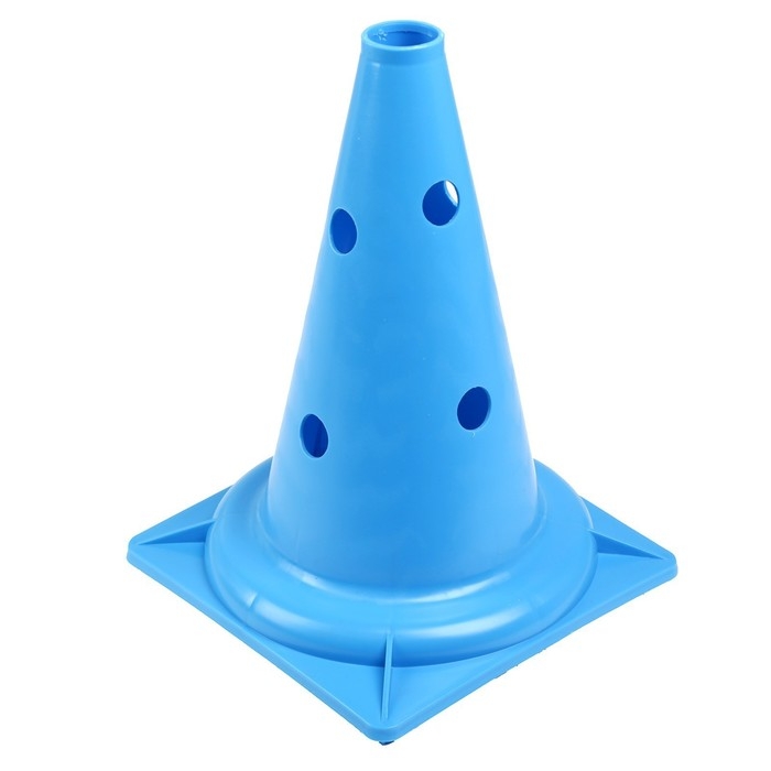 Конус с отверстиями в голубом цвете является отличным выбором для разметки различных зон на спортивной площадке.