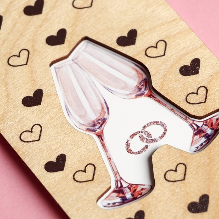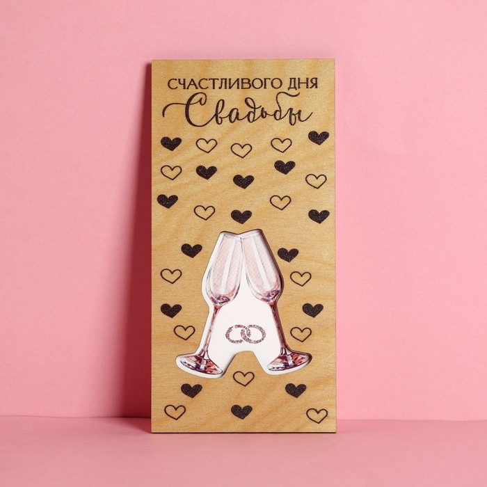 Конверт деревянный резной «С Днем Свадьбы», бокалы, 16,5 х 8 см