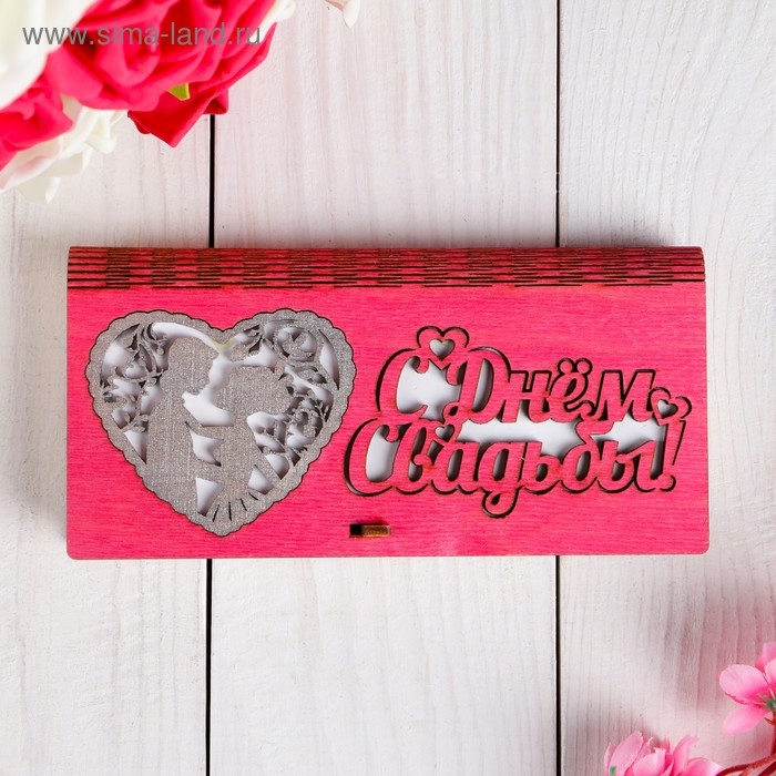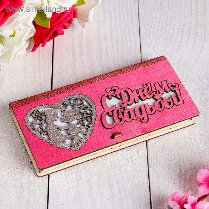 Конверт деревянный "С Днём Свадьбы!" молодожёны