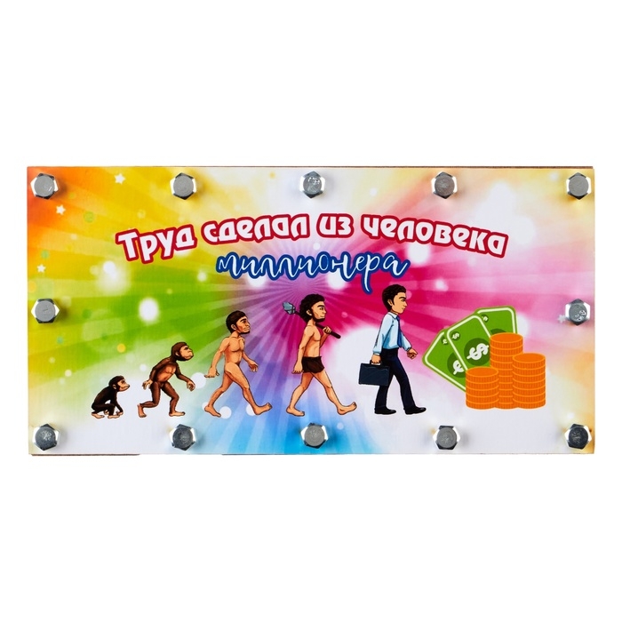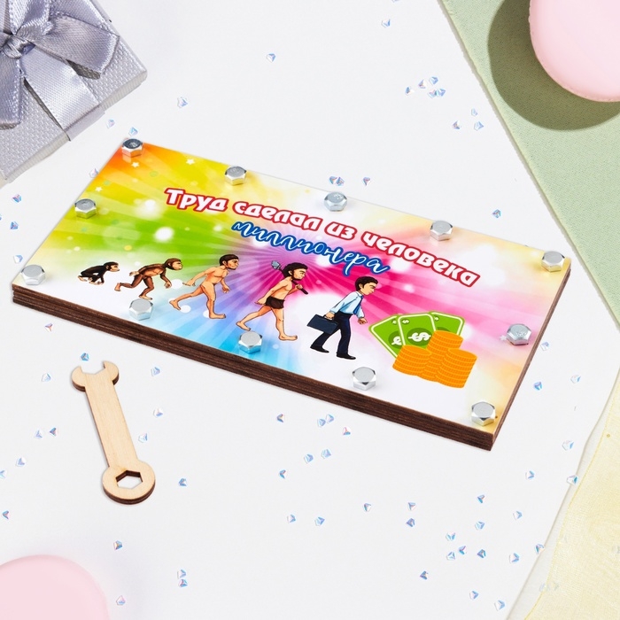 Конверт деревянный с гайками "Труд сделал из человека миллионера!"