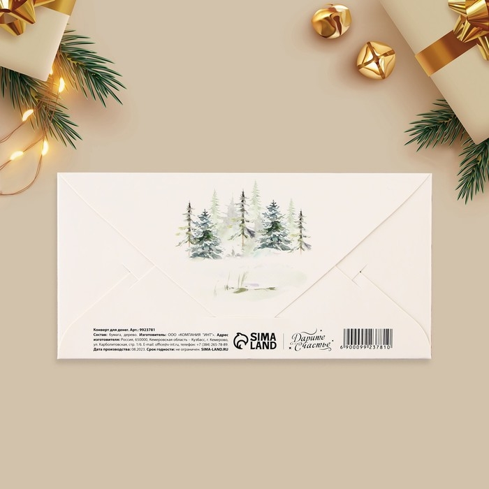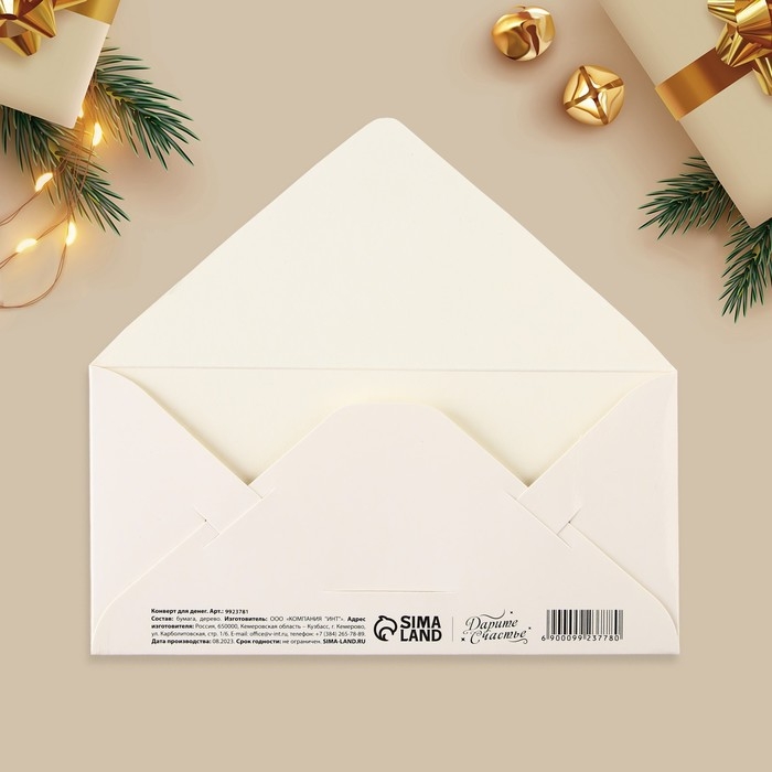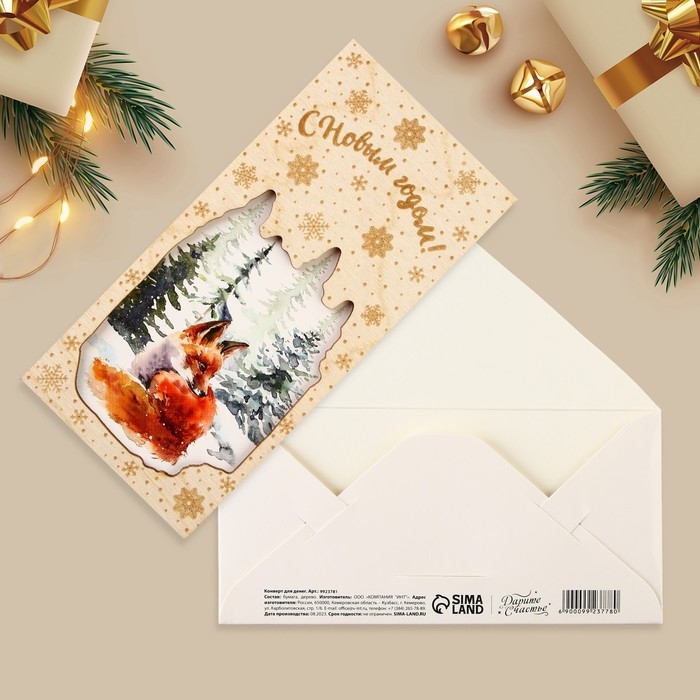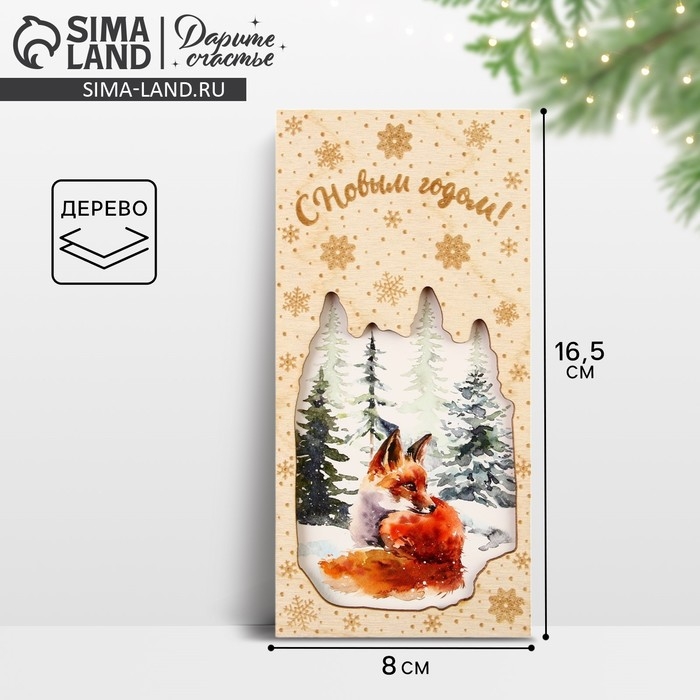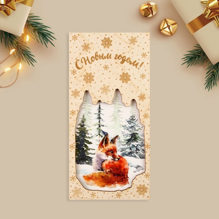 Конверт для денег деревянный резной «С Новым годом!», лиса, 16.5 х 8 см, Новый год