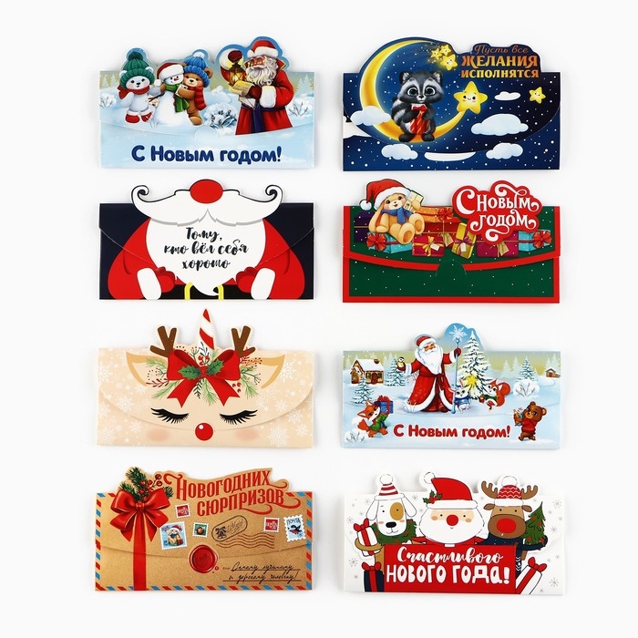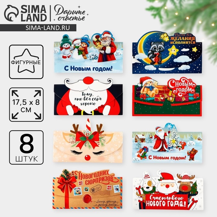 Конверт для денег, набор 8 штук, «С Новым Годом!», 17.5 х 9 см, Новый год