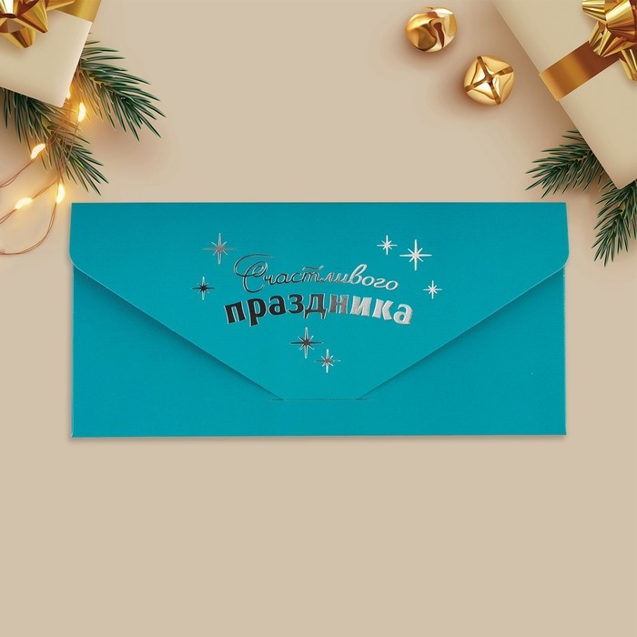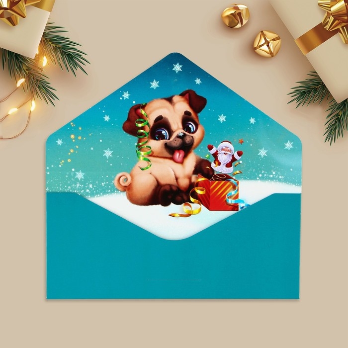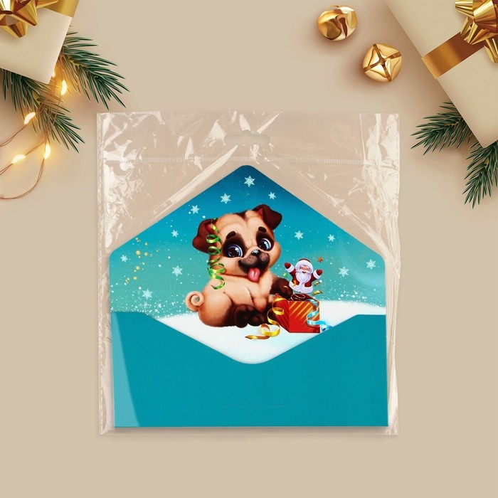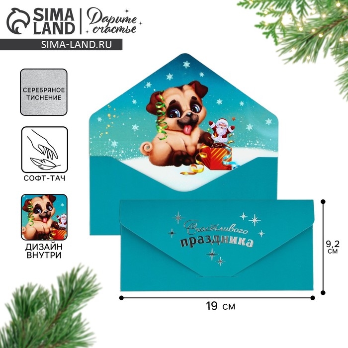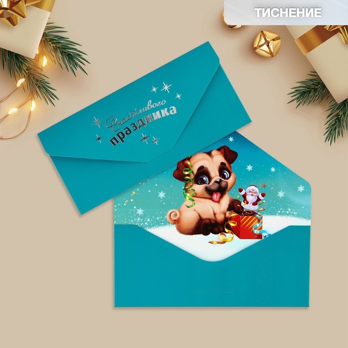 Конверт для денег подарочный «Счастливого праздника», щенок, софт тач, тиснение, 19 х 9.2 см, Новый год