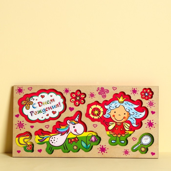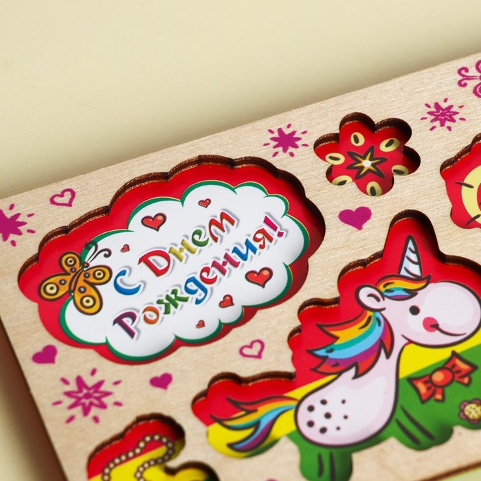 Конверт для денег с деревянным элементом "С Днем Рождения!" единорог