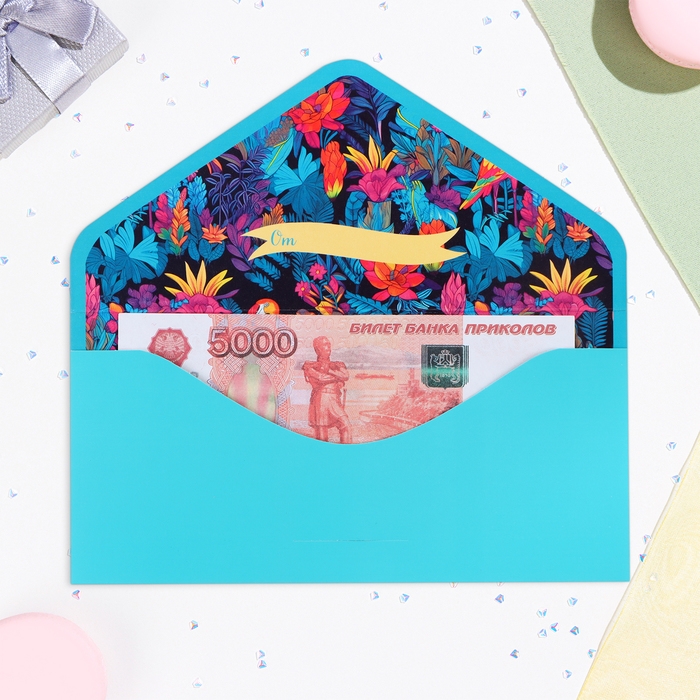 Конверт для денег "С Днём Рождения!" тиффани, софт-тач, тиснение, 19 х 9 см