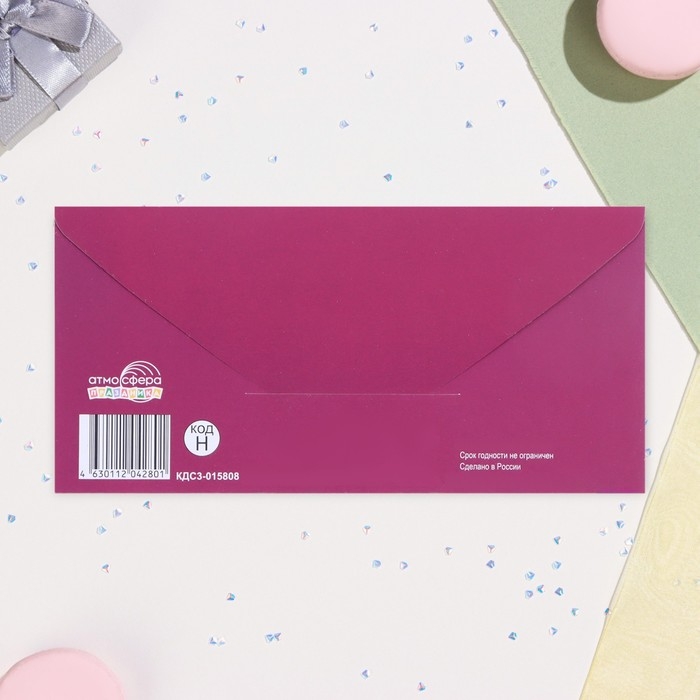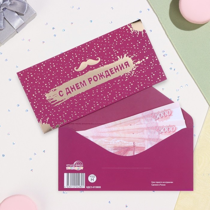 Конверт для денег "С Днём рождения!" усы, тиснение, 17 х 8 см