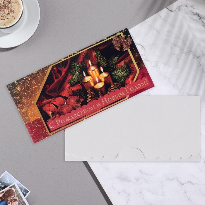 Конверт для денег "С Рождеством и Новым Годом!" свечи, ручная работа,