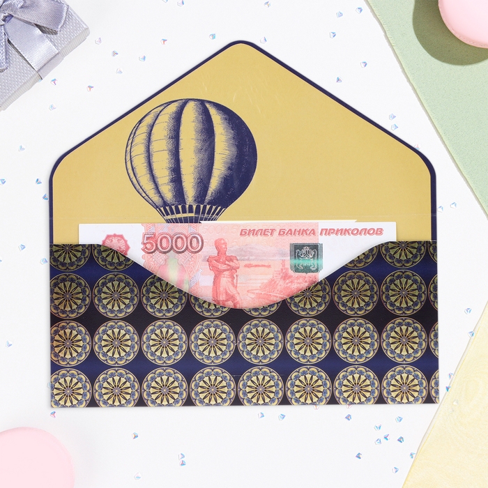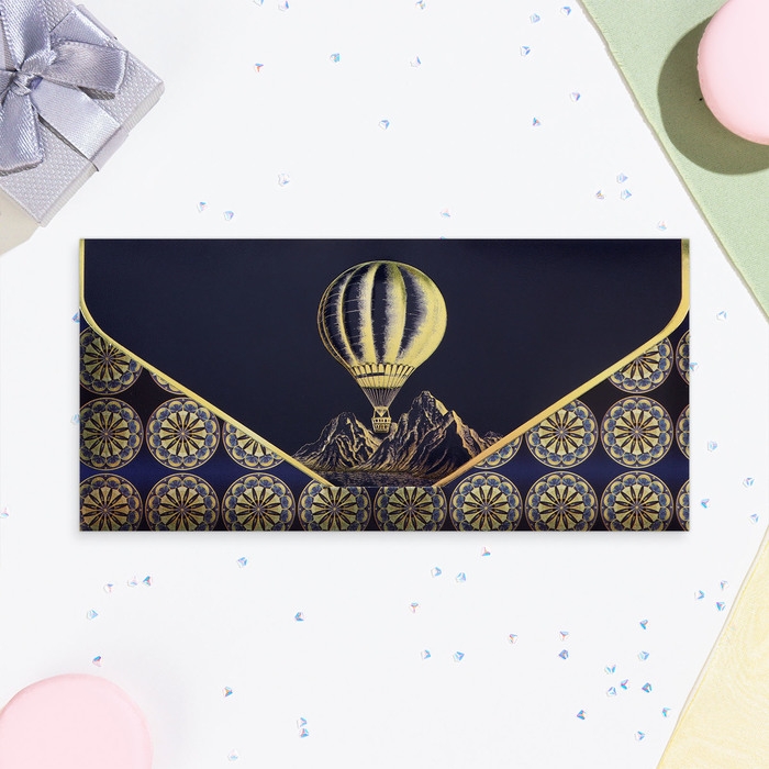 Конверт для денег "Универсальный" воздушный шар, софт-тач, тиснение, 19 х 9 см
