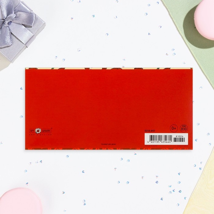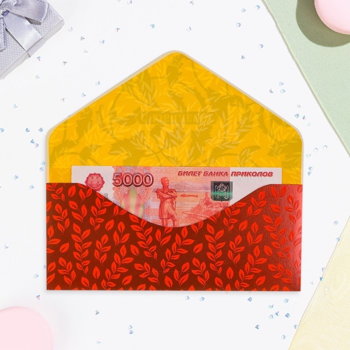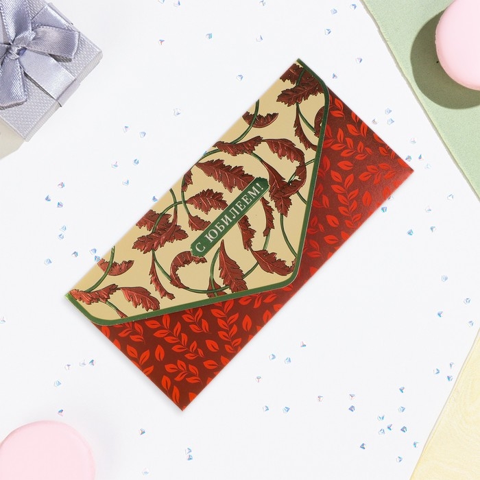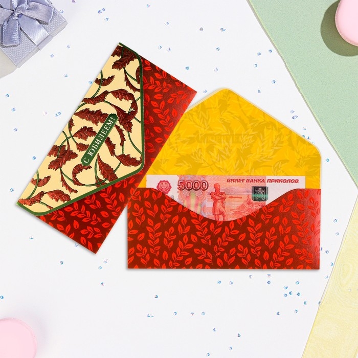 Конверт "С Юбилеем!" вырубка, конгрев, тиснение, красные листья
