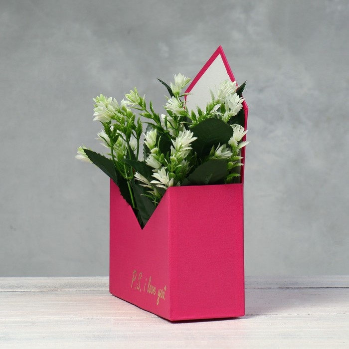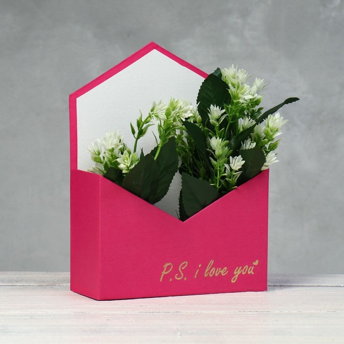 Конверт с золотым тиснением P.S. I love you, малиновый 18 х 24 х 7 см
