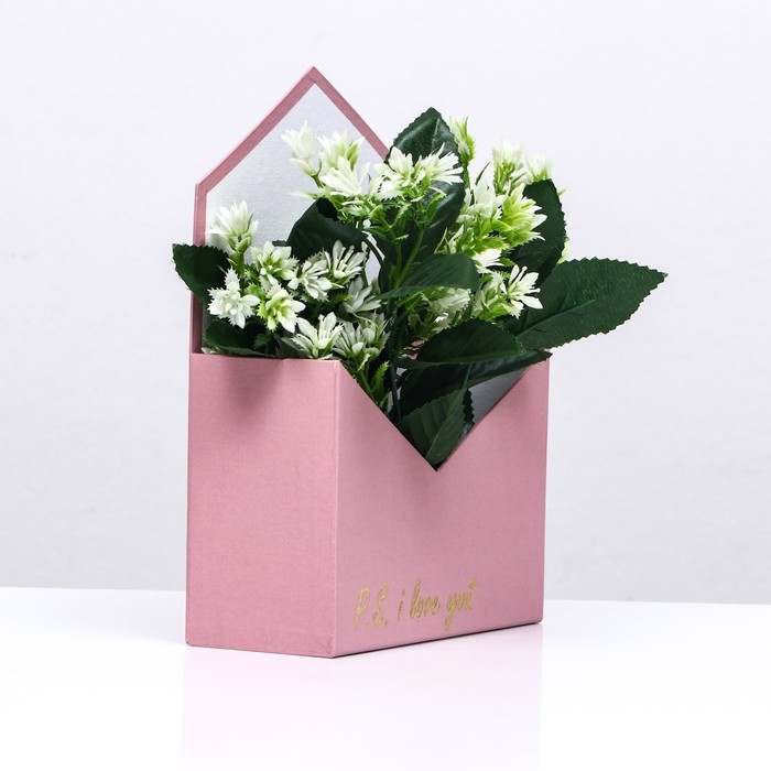 Конверт с золотым тиснением P.S. I love you, пыльная роза 18 х 24 х 7 см