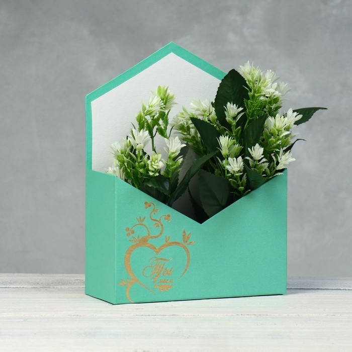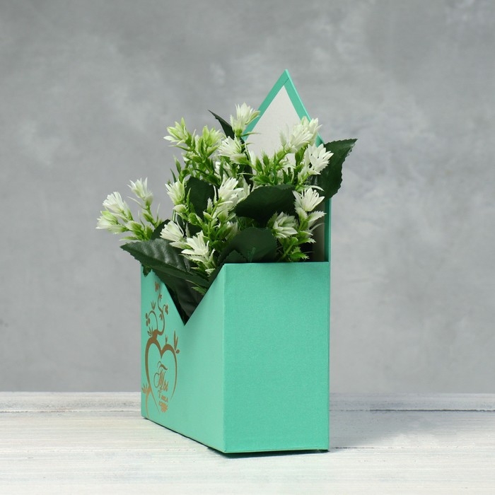 Конверт с золотым тиснением "Ты в моём сердце", морская волна 18 х 24 х 7 см