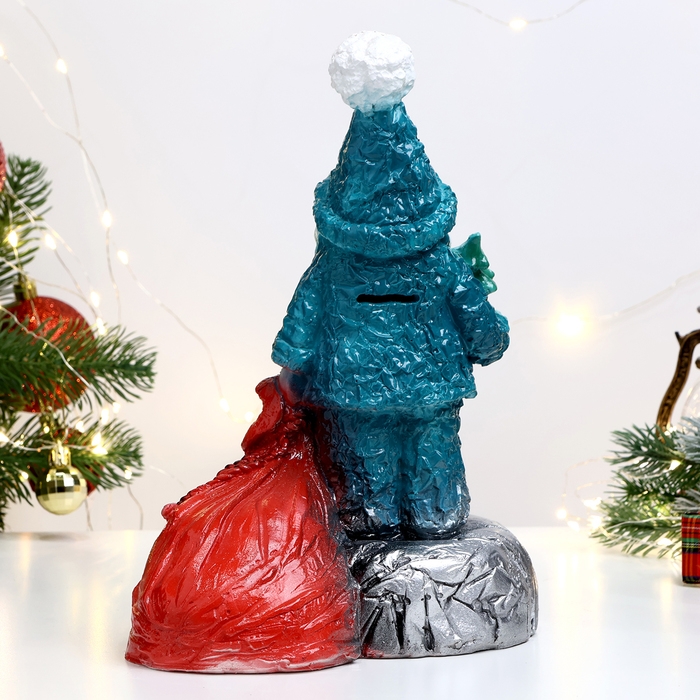 Копилка "Дед мороз с мешком" красная, 25х21см