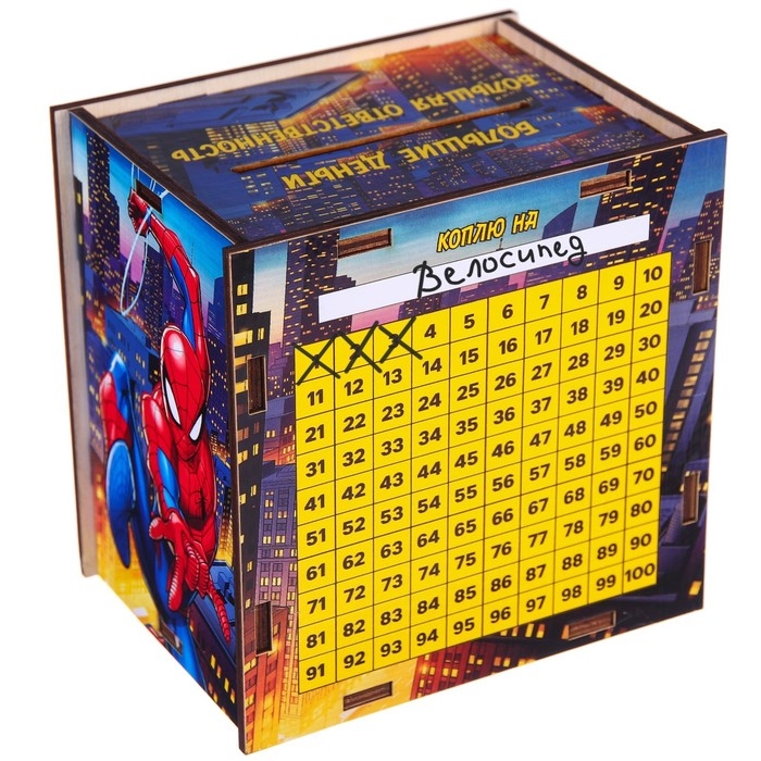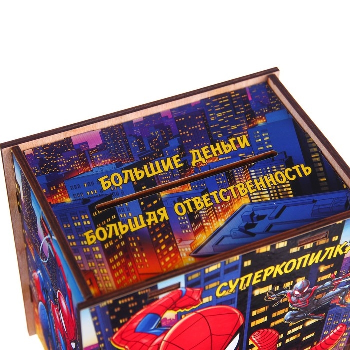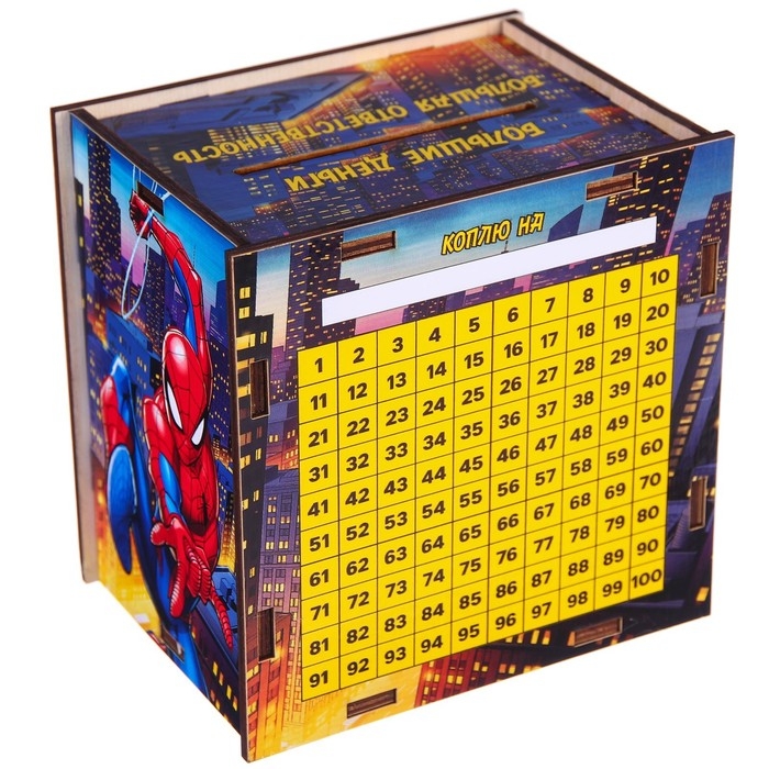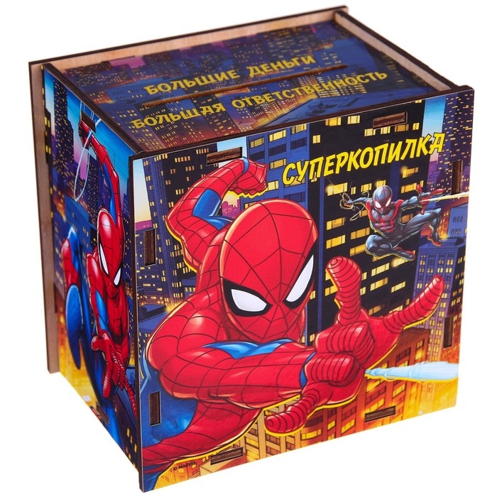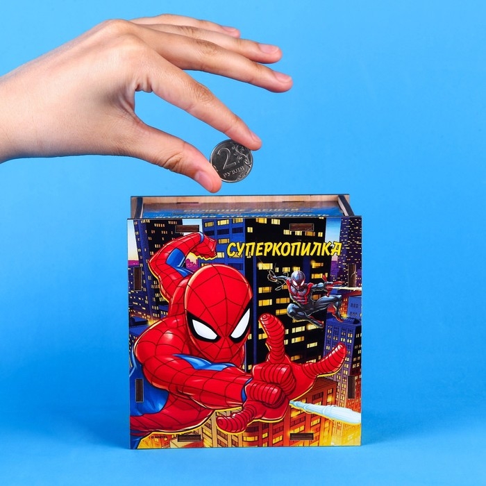 Копилка деревянная с цифрами, 12х12х8.6 см, Человек-паук