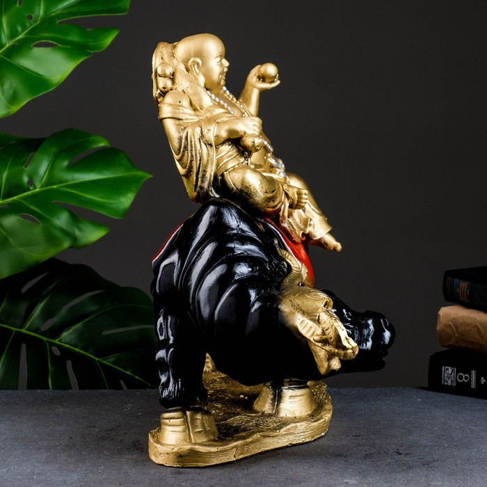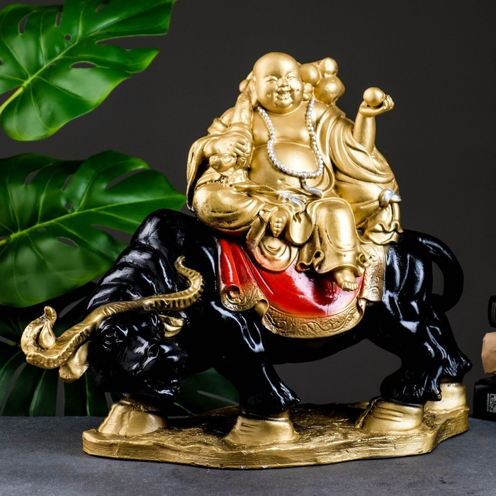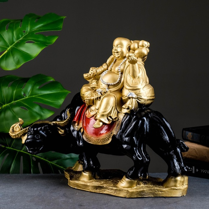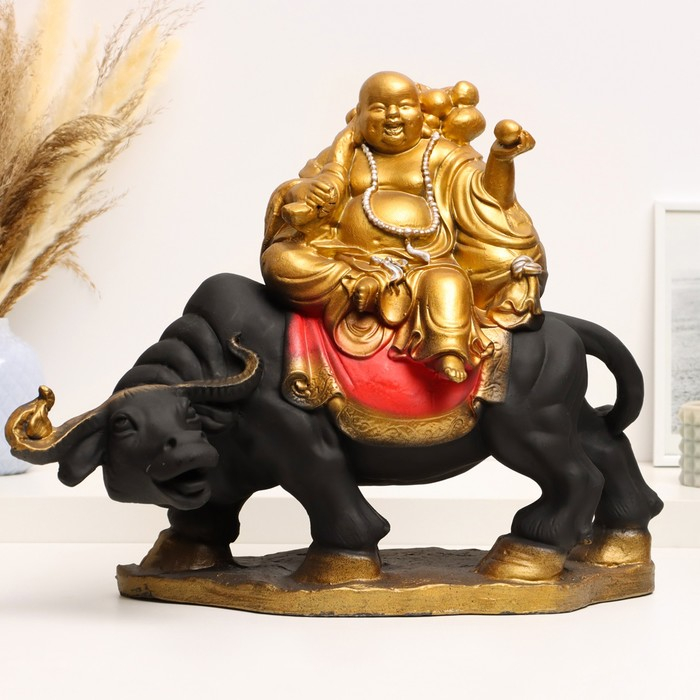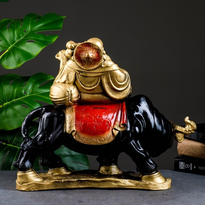 Копилка "Хоттей на буйволе" красное золото, 22х44х37см