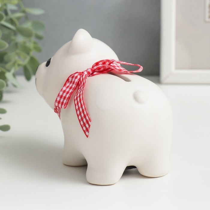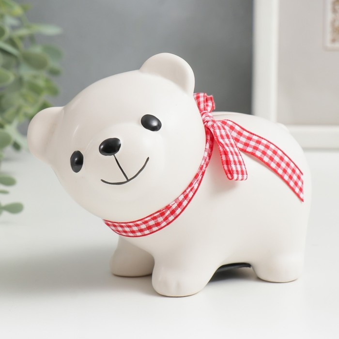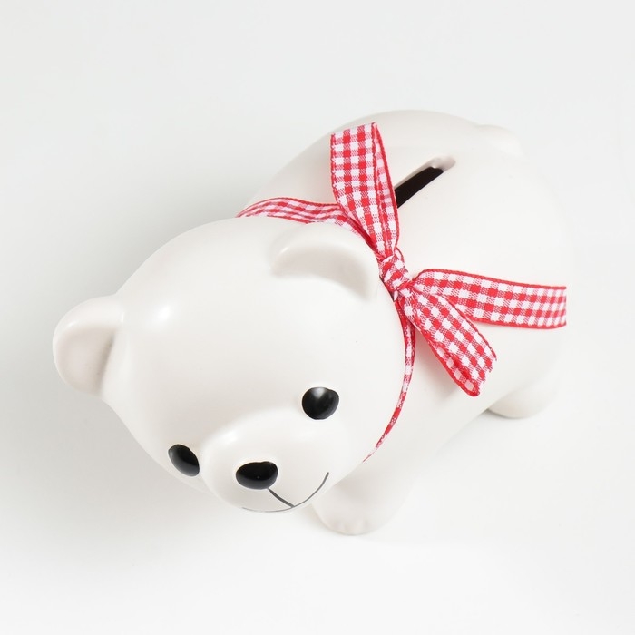 Копилка керамика "Белый мишка с бантом" 10х11х6,3 см