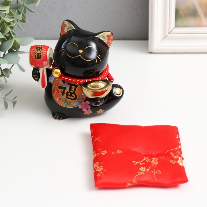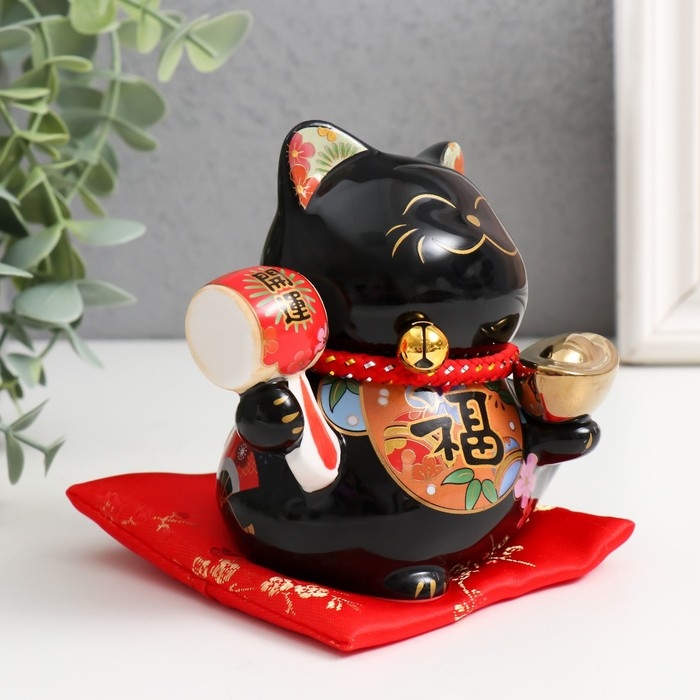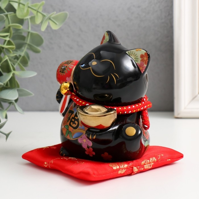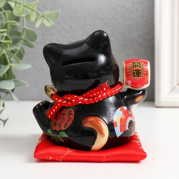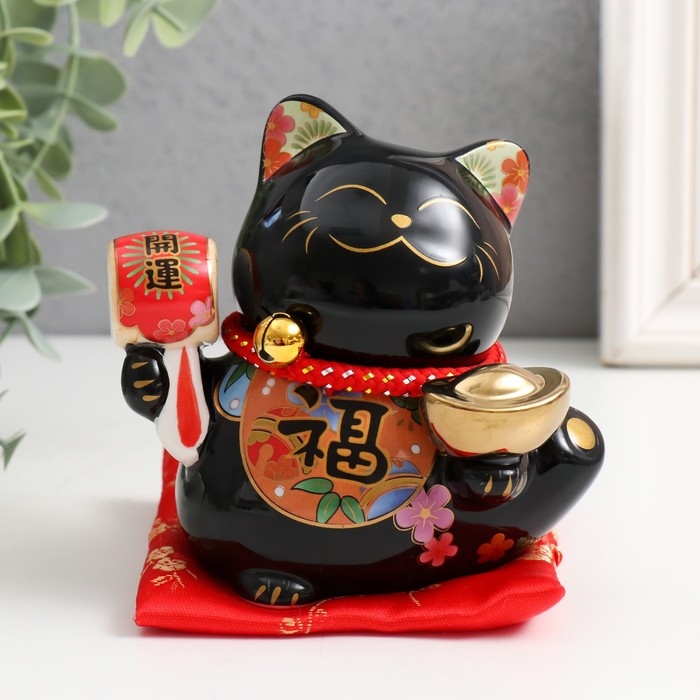 Копилка керамика "Кот Манэки-нэко с пожеланием счастья " черный 8,5х9,5х12,5 см