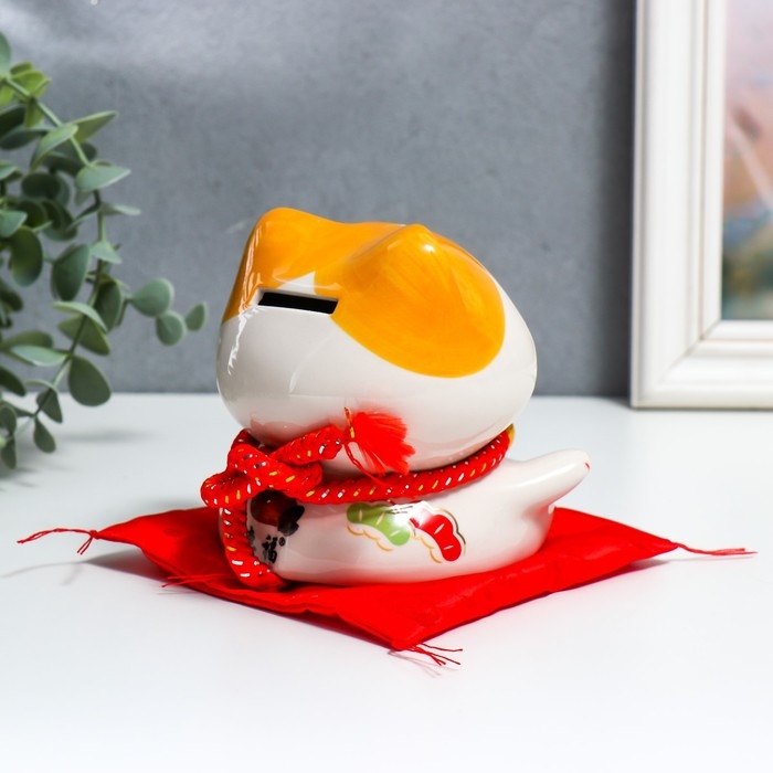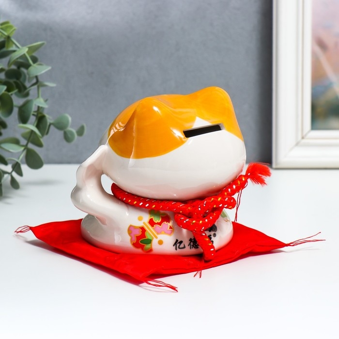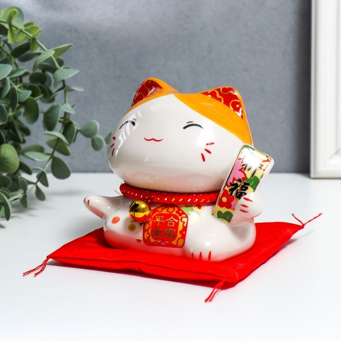 Копилка керамика "Манэки-нэко с цветочными иероглифами" 12,5х10х11 см