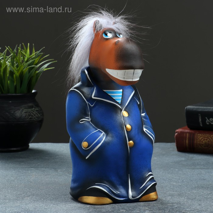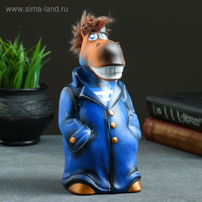 Копилка "Конь в пальто" 10х11х22см, синий