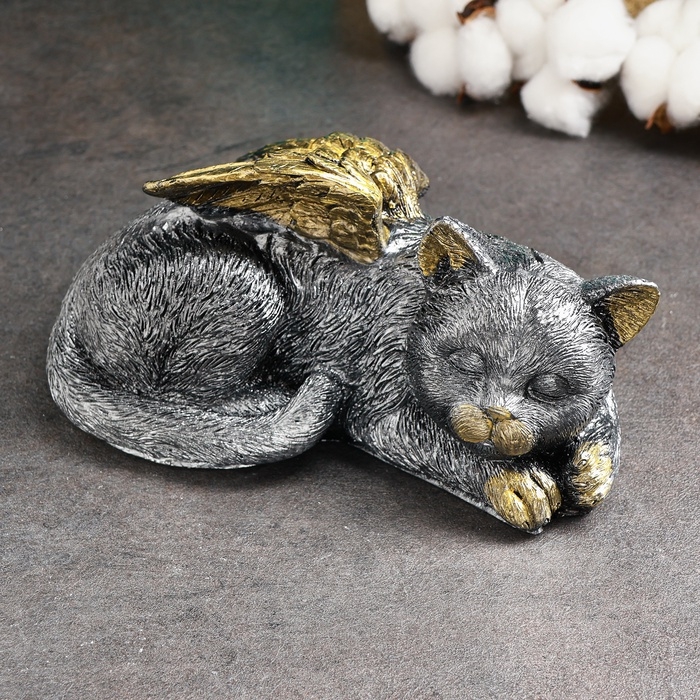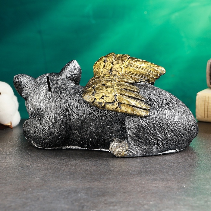 Копилка "Котенок ангел" 21х12см, серебро с позолотой