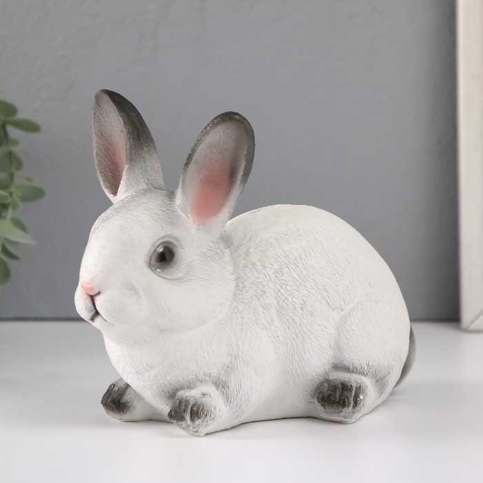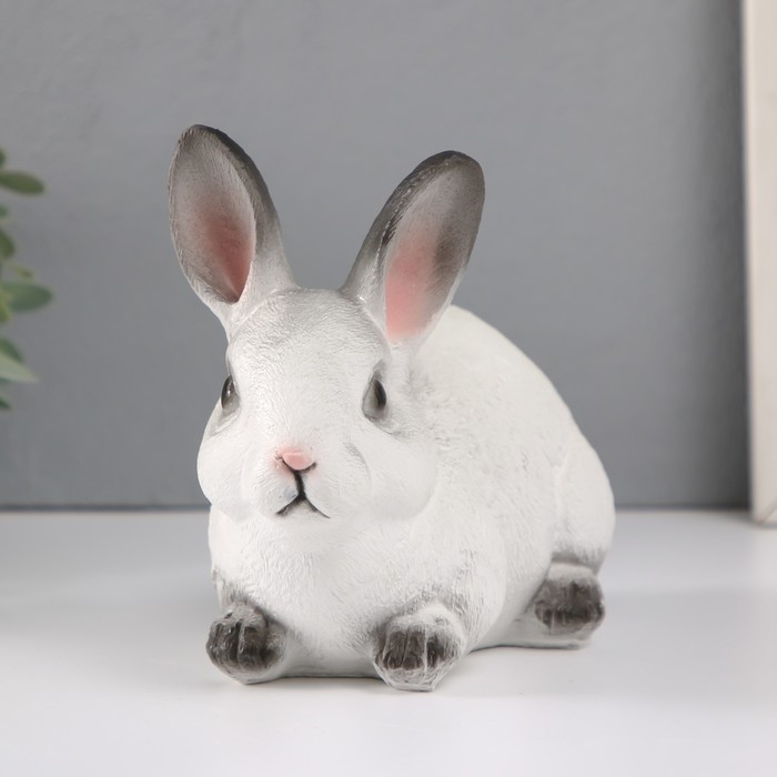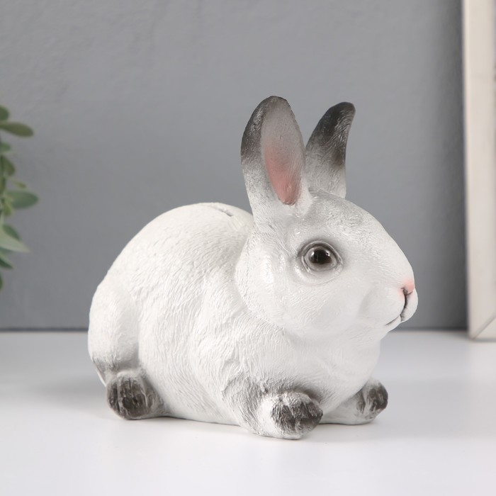 Копилка "Кролик №1 Белый с чёрными кончиками" высота 14 см, ширина 10 см, длина 18 см.