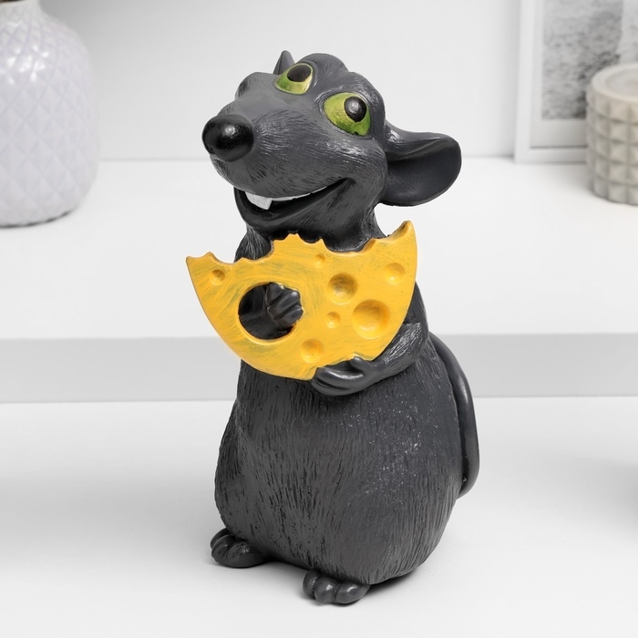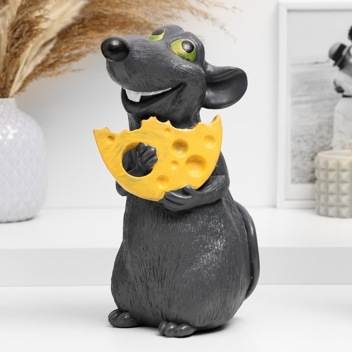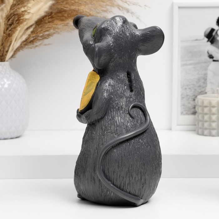 Копилка "Крыса с сыром" темно-серая, 24х16х14см