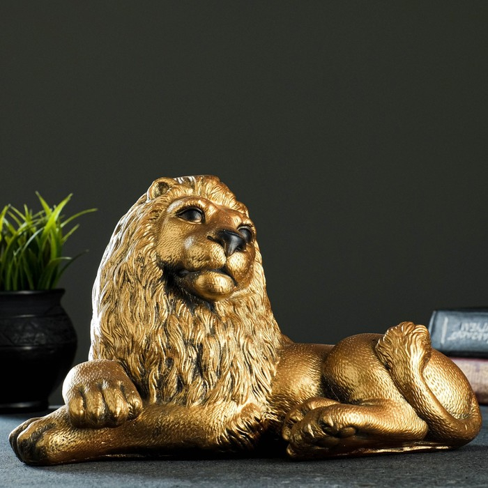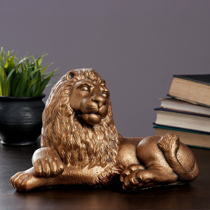 Копилка "Лев лежа малый" бронза, 28х15х18см МИКС
