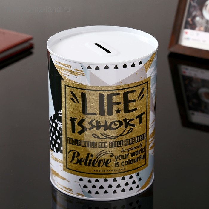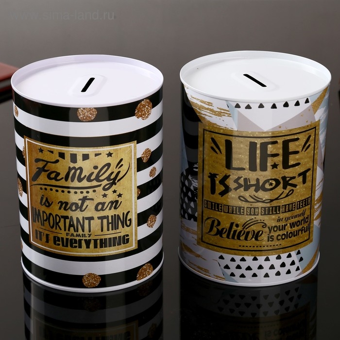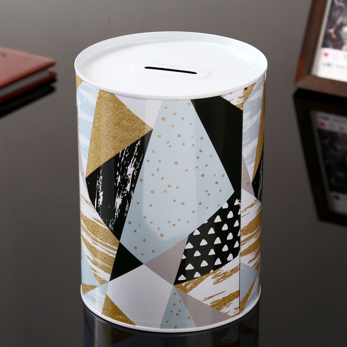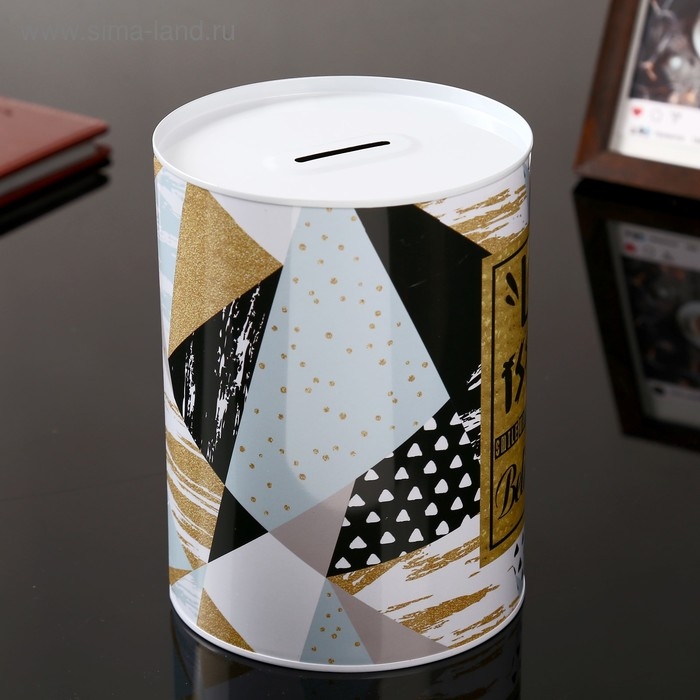Копилка металл банка "Геометрия и надписи" с золотом МИКС 16х12х12 см