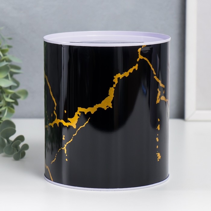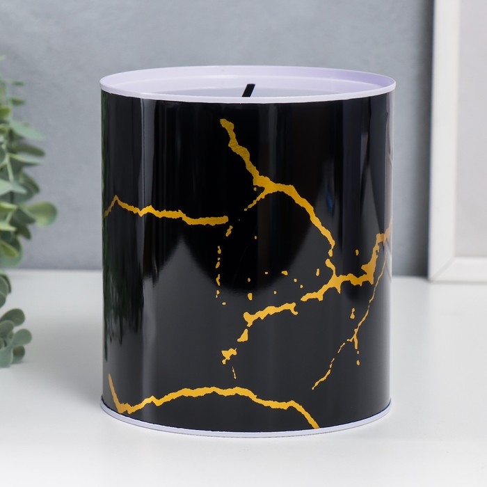 Копилка металл банка "Мрамор с золотыми трещинами" МИКС 15,5х13,5х13,5 см