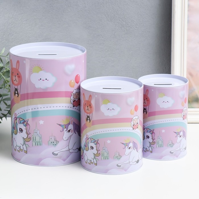 Копилка металл банка "Звери облачного царства" набор 3 шт 10х10х15;12х12х16;15х15х21,4 см