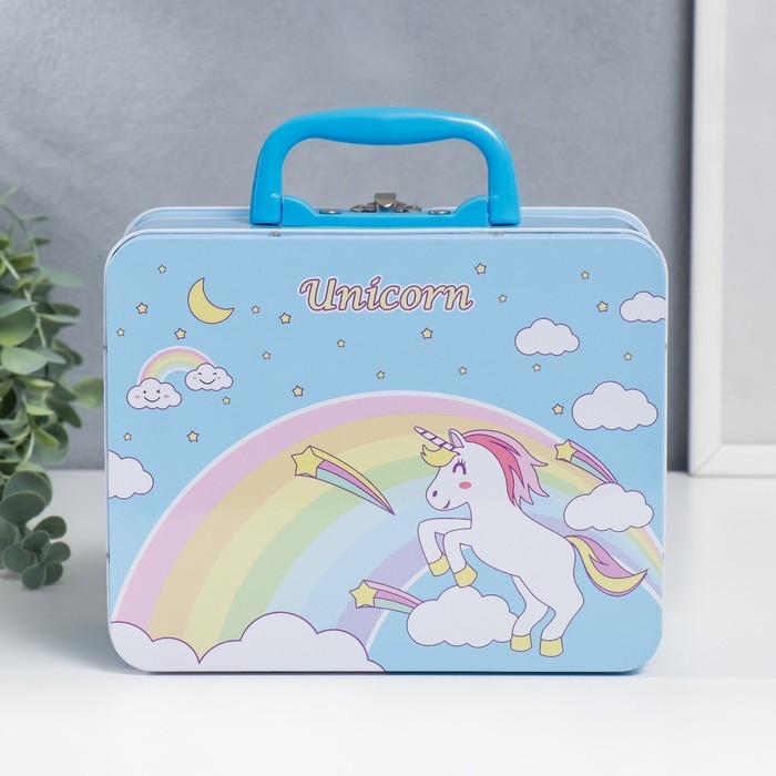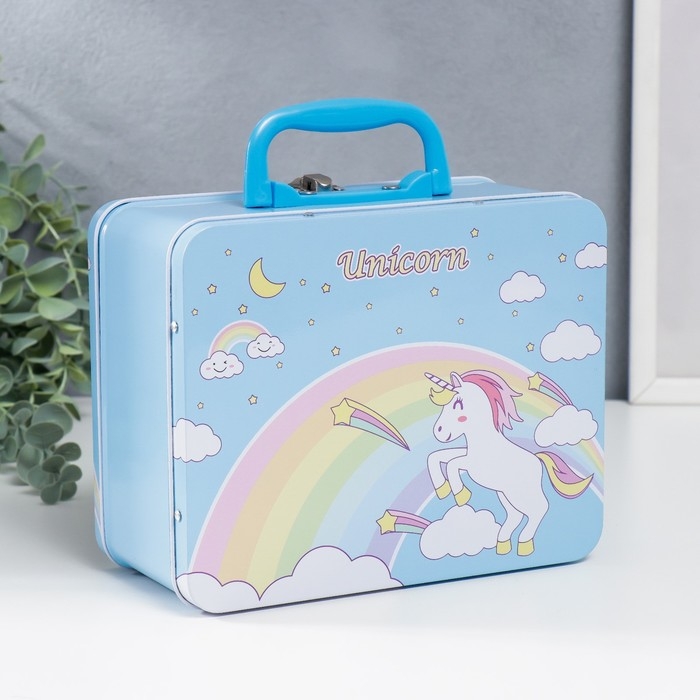 Копилка металл чемодан "Единорог и радуга" 9,5х15,5х19,5 см