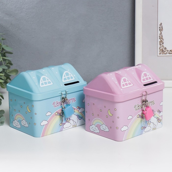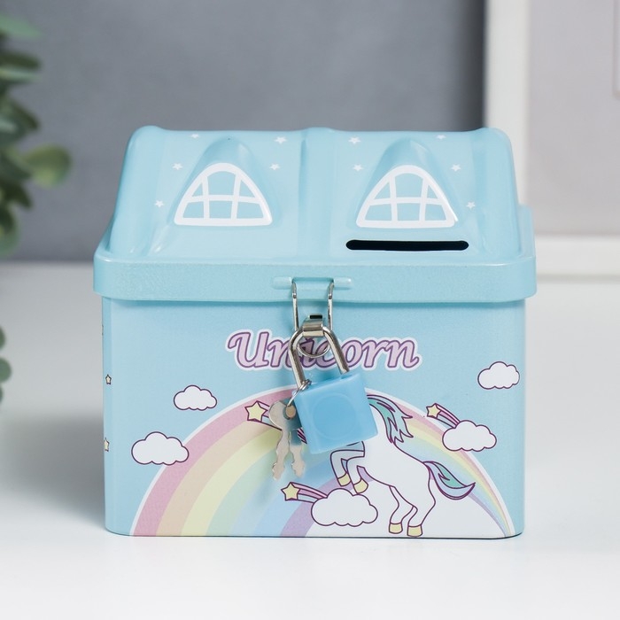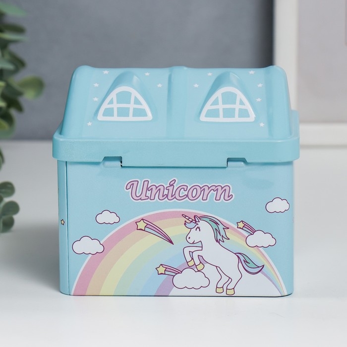 Копилка металл домик "Единорог" МИКС 10х9,5х12 см