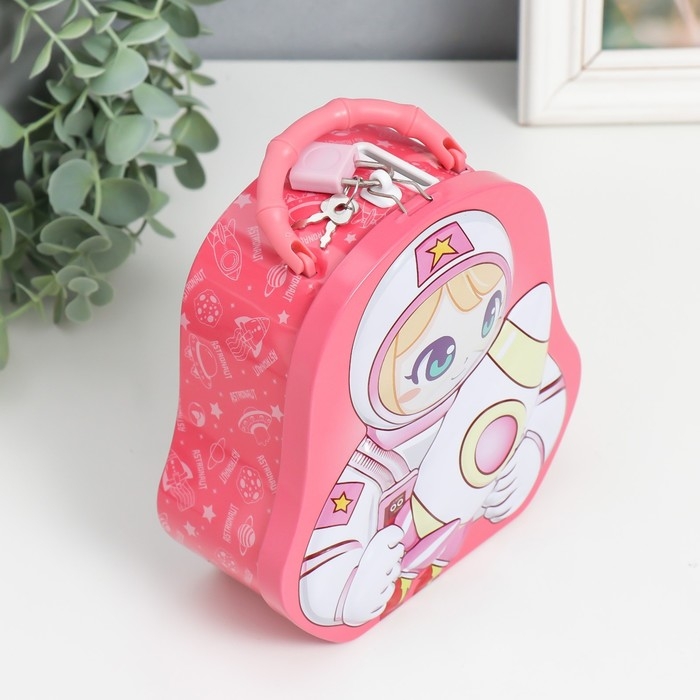 Копилка металл с замочком "Космонавт мальчик/девочка" МИКС 6,5х15,5х16,6 см