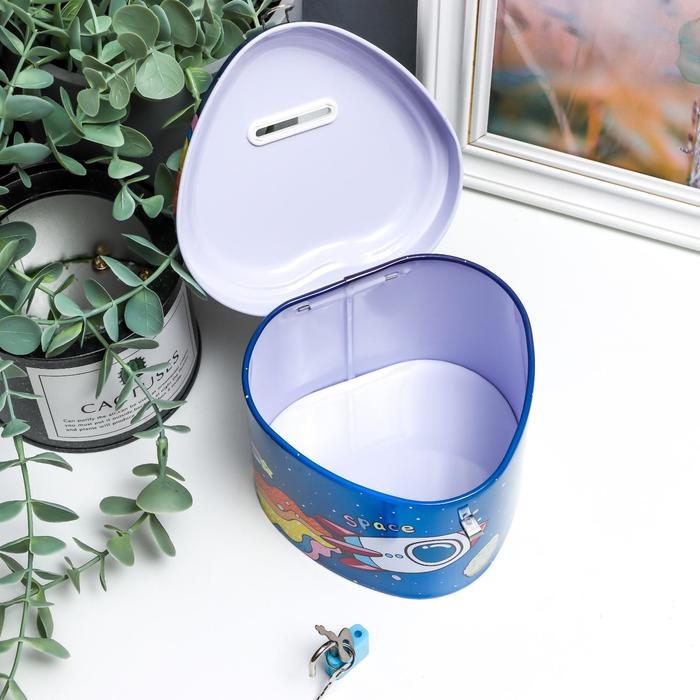 Копилка металл с замочком "Космос и облака" МИКС 9х11,5х11 см