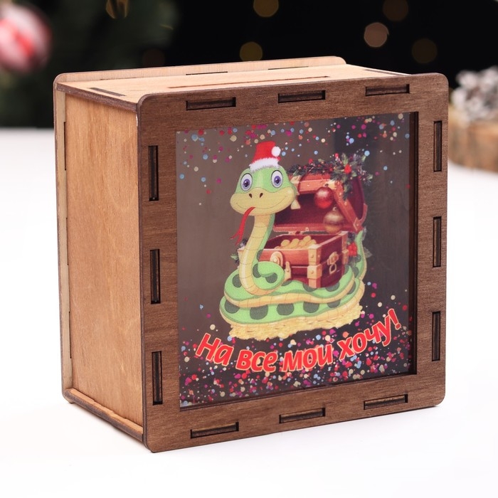 Копилка новогодняя "На все мои хочу!" символ года, сундук, 14 х 14 х 8 см