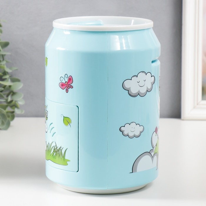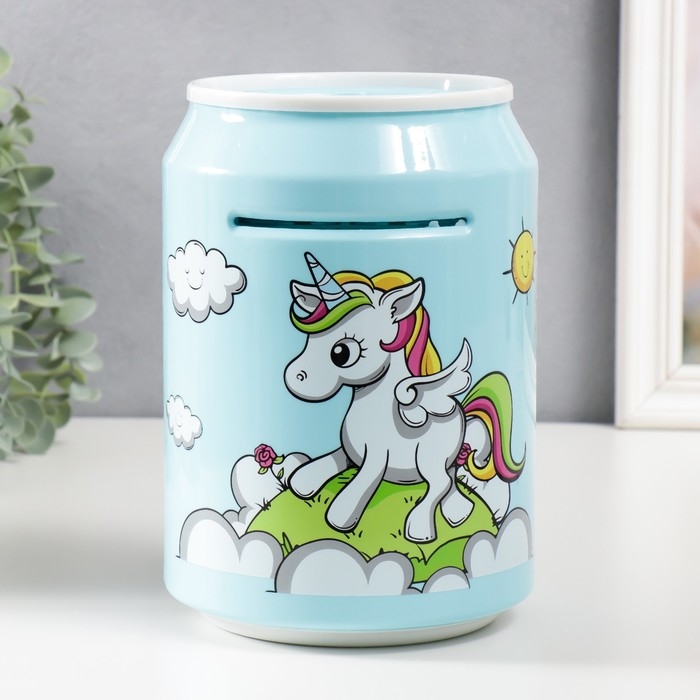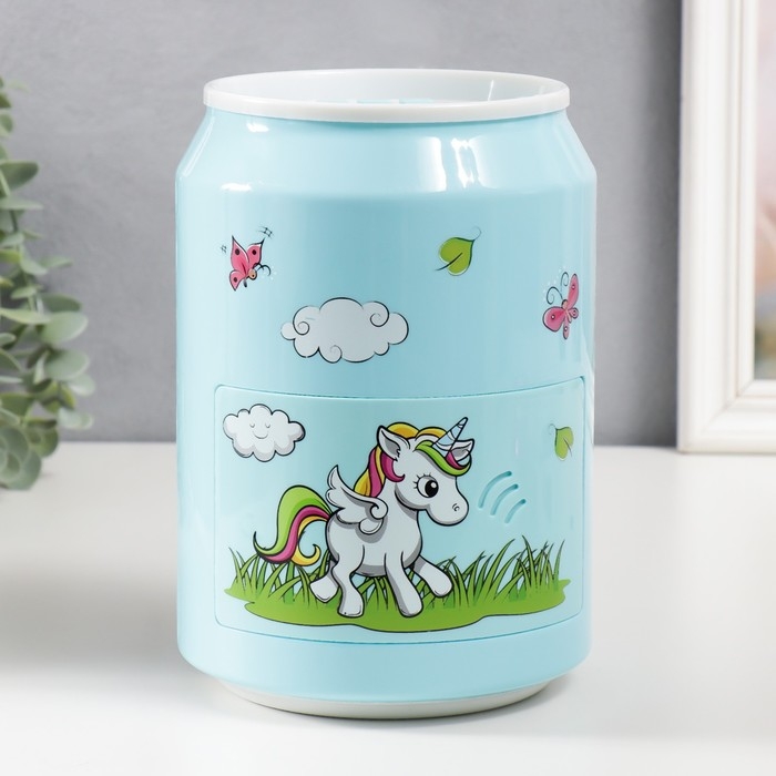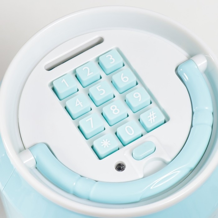 Копилка пластик "Банка. Единорожка" кодовый замок, звук АА голубой 15х21 см