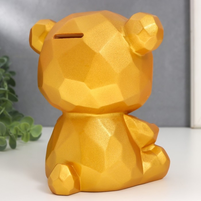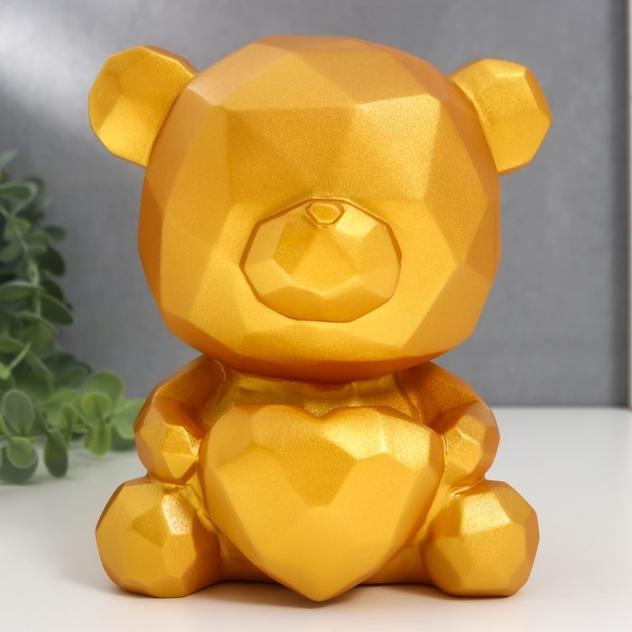 Копилка пластик "Медвежонок с сердцем" золотой 14,5х14х17 см