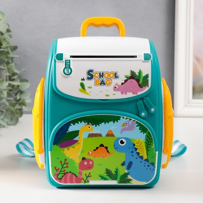 Копилка пластик "Рюкзак с динозаврами" звук АА 18х10х19,8 см