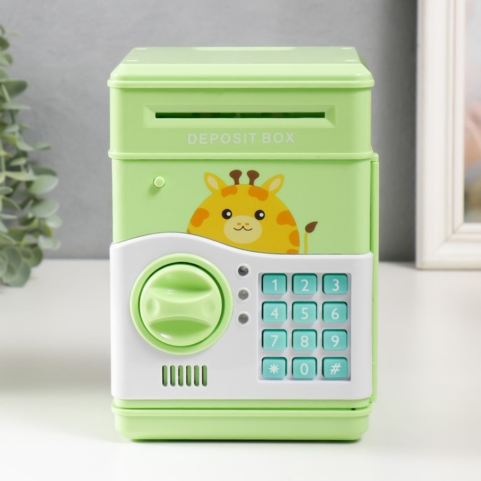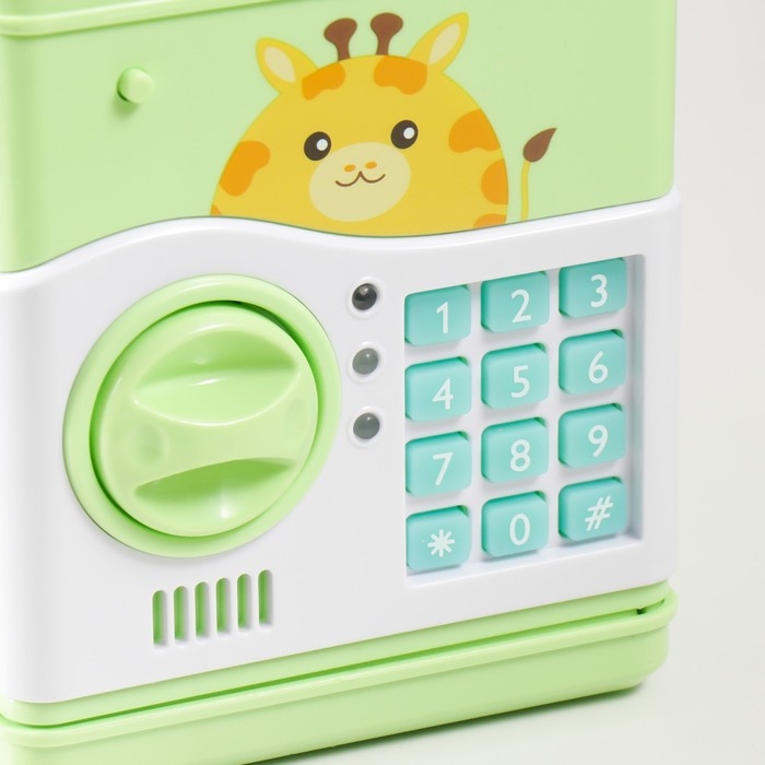Копилка пластик "Сейф. Жирафик" кодовый замок, звук АА зелёный 13х12х19 см