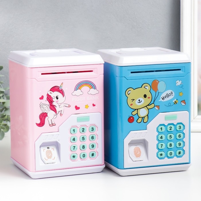 Копилка пластик "Сейф. Зверята" кодовый замок, звук АА МИКС 12,8х13х19,5 см